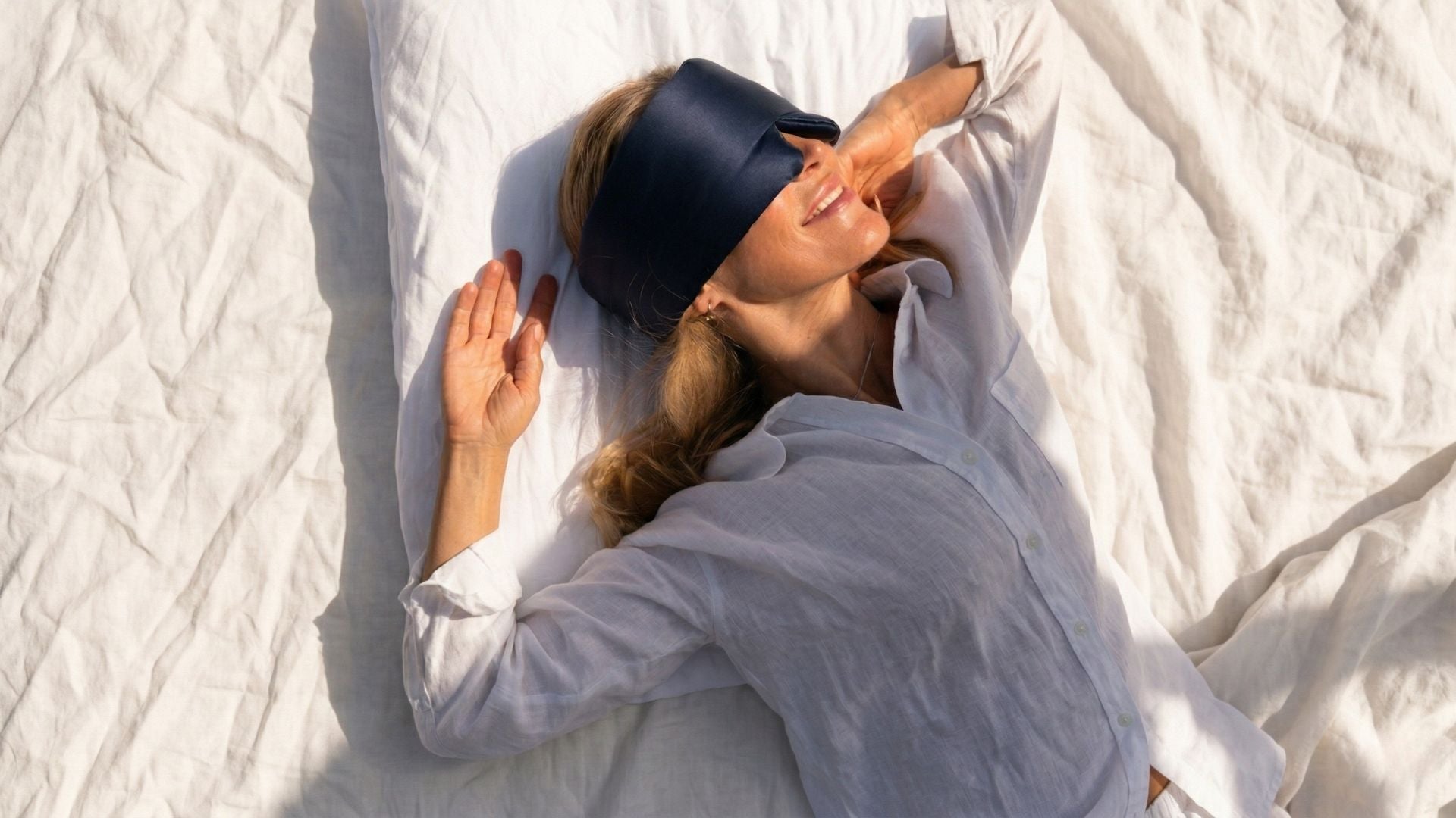 Seda Mulberry. Bloqueia 100% da luz. Sua pele agradece toda manhã.